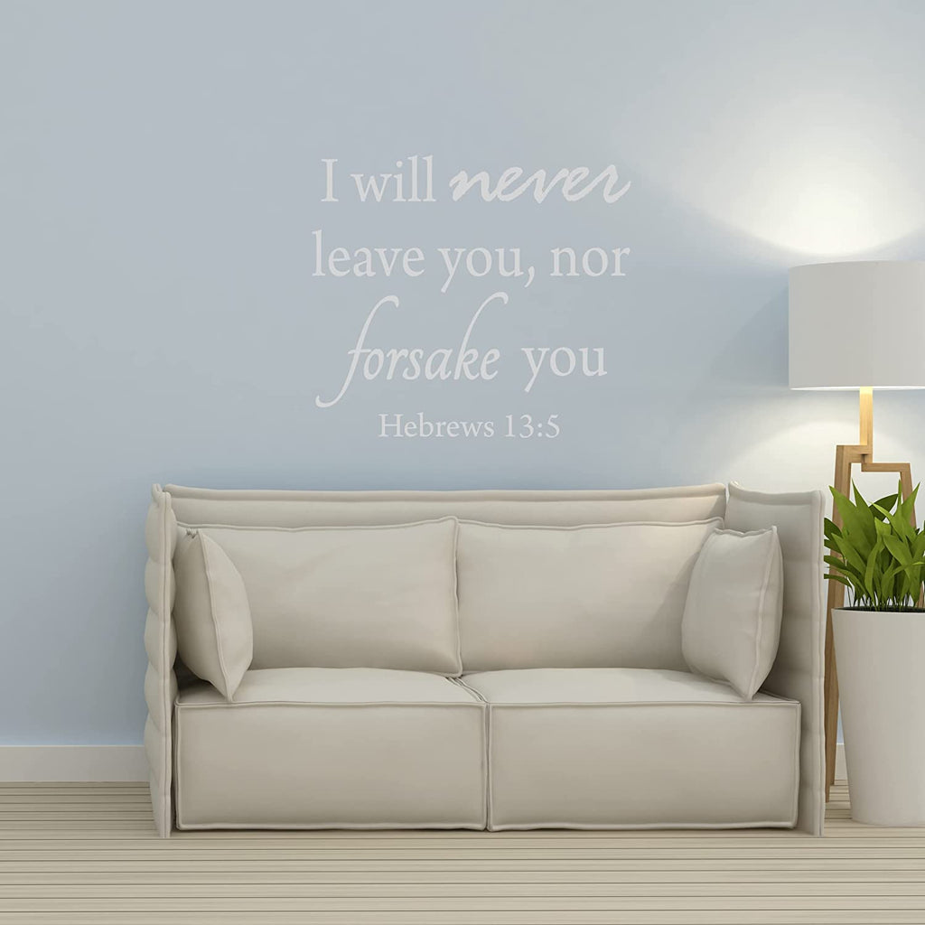 I Will Never Leave You Nor Forsake You Vinyl Wall Decal. This product is produced with a top quality vinyl material. Product can be applied to just about any hard, smooth surface. Includes easy to follow step by step application instructions. Vinyl wall decals are the latest trend in home decor and are a creative way to add a touch of class to any room in your home. Fast shipping from the USA.