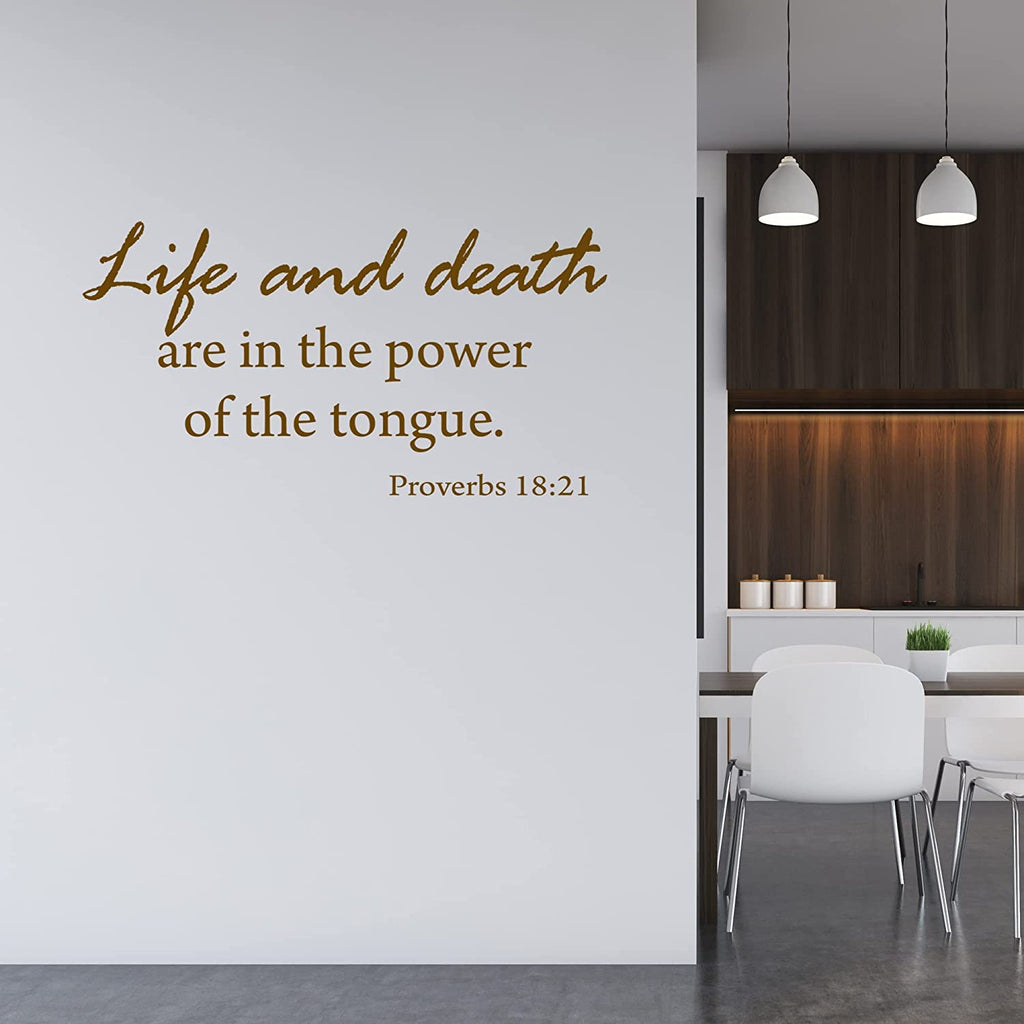 Life and Death Are In The Power Of The Tongue Vinyl Wall Art Christian Decal Quote. This product is produced with a good quality vinyl with an indoor matte finish which gives the appearance of a professionally hand painted stencil look without the mess and hassle. Includes easy to follow step by step application instructions. Vinyl wall quotes are the latest trend in home and office decor and are a creative way to add a touch of class to any room in your home or office.